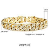 Introducing the Miami Gold Curb Cuban Chain Bracelet, a timeless and original piece of jewelry perfect for an elegant, sophisticated look. This beautiful bracelet is constructed with high-quality metal alloy and features a geometric pattern along with a single hook clasp for comfortable, secure wear. The pave setting adds a unique shine to the piece, creating stunning accents that will draw attention wherever you go. Upgrade your wardrobe with this exquisite Miami Gold Curb Cuban Chain Bracelet! With its high-end design and polished finish, this versatile piece will soon become your go-to accessory for any occasion. Keep it as part of your everyday look or incorporate it as an elevated touch to special events â no matter what style youâre going for this bracelet is sure to make an impression. Add it to your collection today for a timeless and stylish accessory that will stay in fashion season after season!